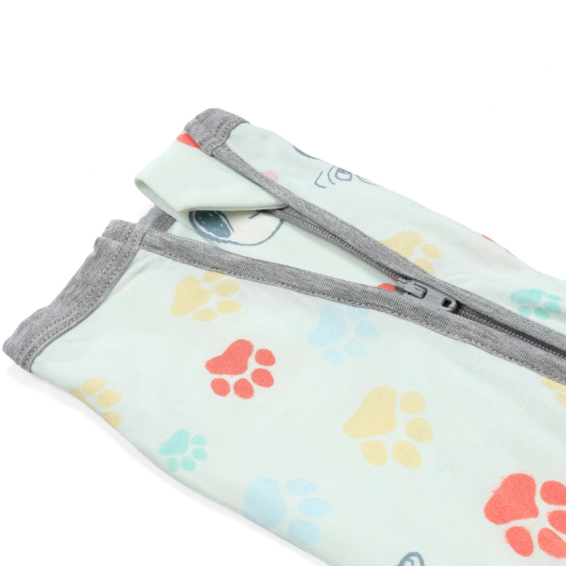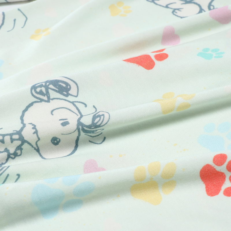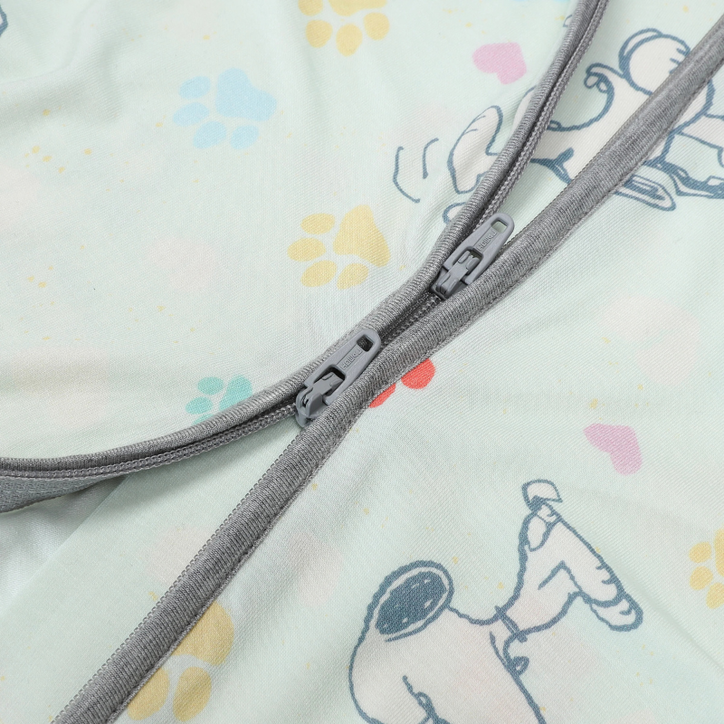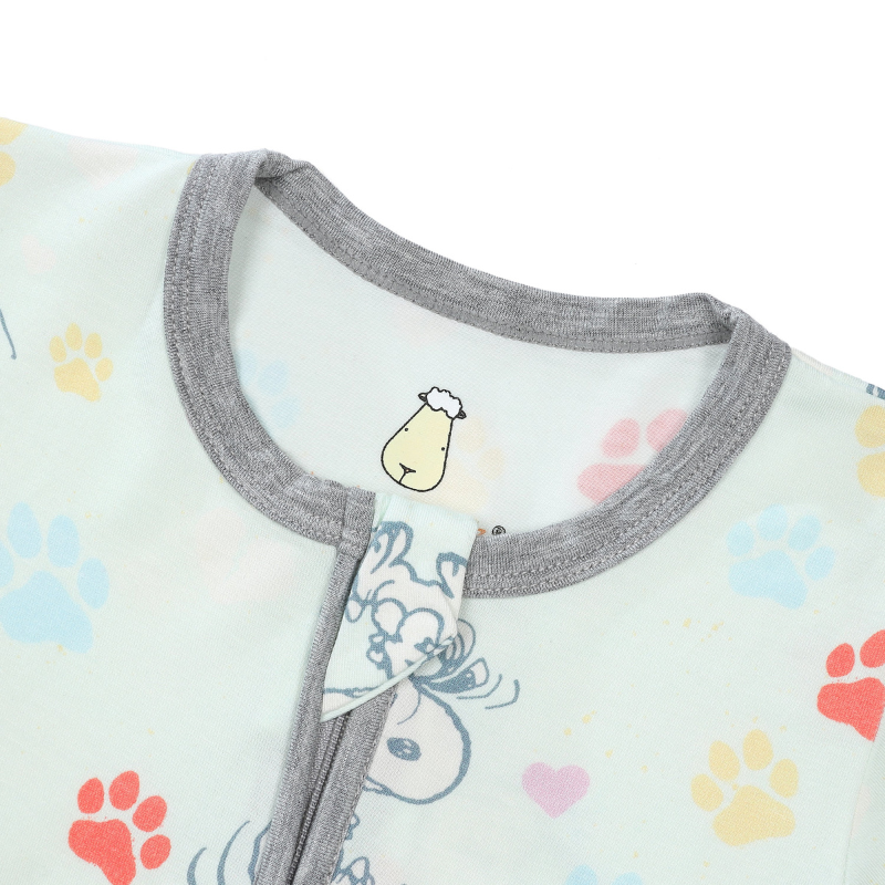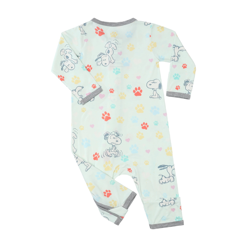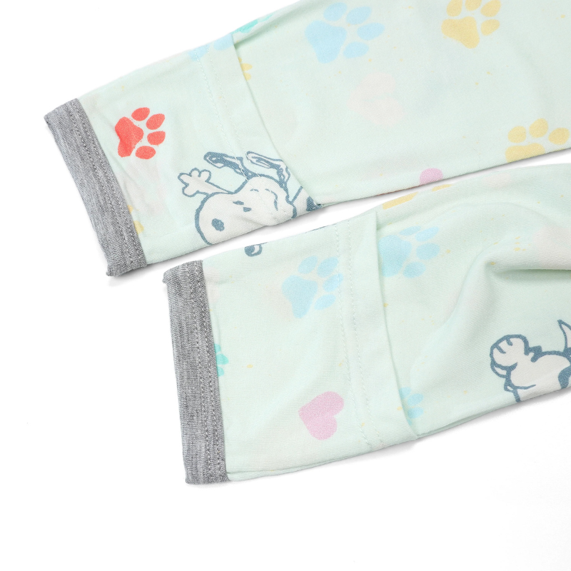 長袖雙拉鏈連身衣/史努比聯名款/綠底彩色腳印