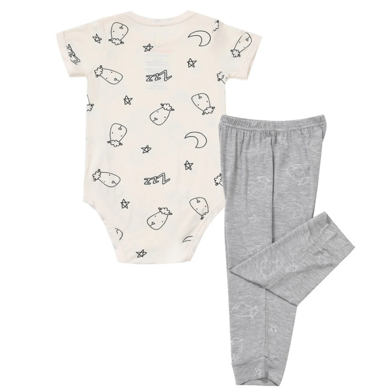 • 【甜夢系列】短袖包屁衣套裝/甜夢(黃)衣&灰褲