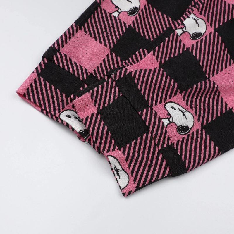 【史努比聯名款】史努比聯名款|長袖睡衣套裝-粉格史努比